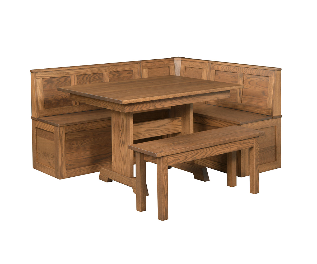 • Wall benches have storage in the seats
